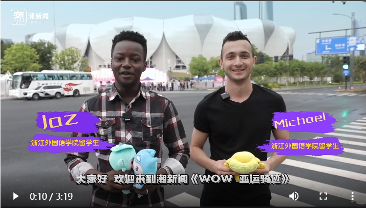 如何更好地讲好亚运故事、中国故事?学校主动谋划故事内容和传播方式,宣传部组织多位外籍师生,与潮新闻、浙江在线等媒体深度联动,通过“探美亚运”谋划区域化、分众化、精准化的国际传播,拍摄了“亚运‘骑’迹”、“Wow!亚运”、“共赴亚运 相约杭州”等13期宣传片,向世界展示了一个充满魅力、充满活力、充满希望的浙江,让世界近距离看到了一个更加真实、立体、生动、美好的中国。