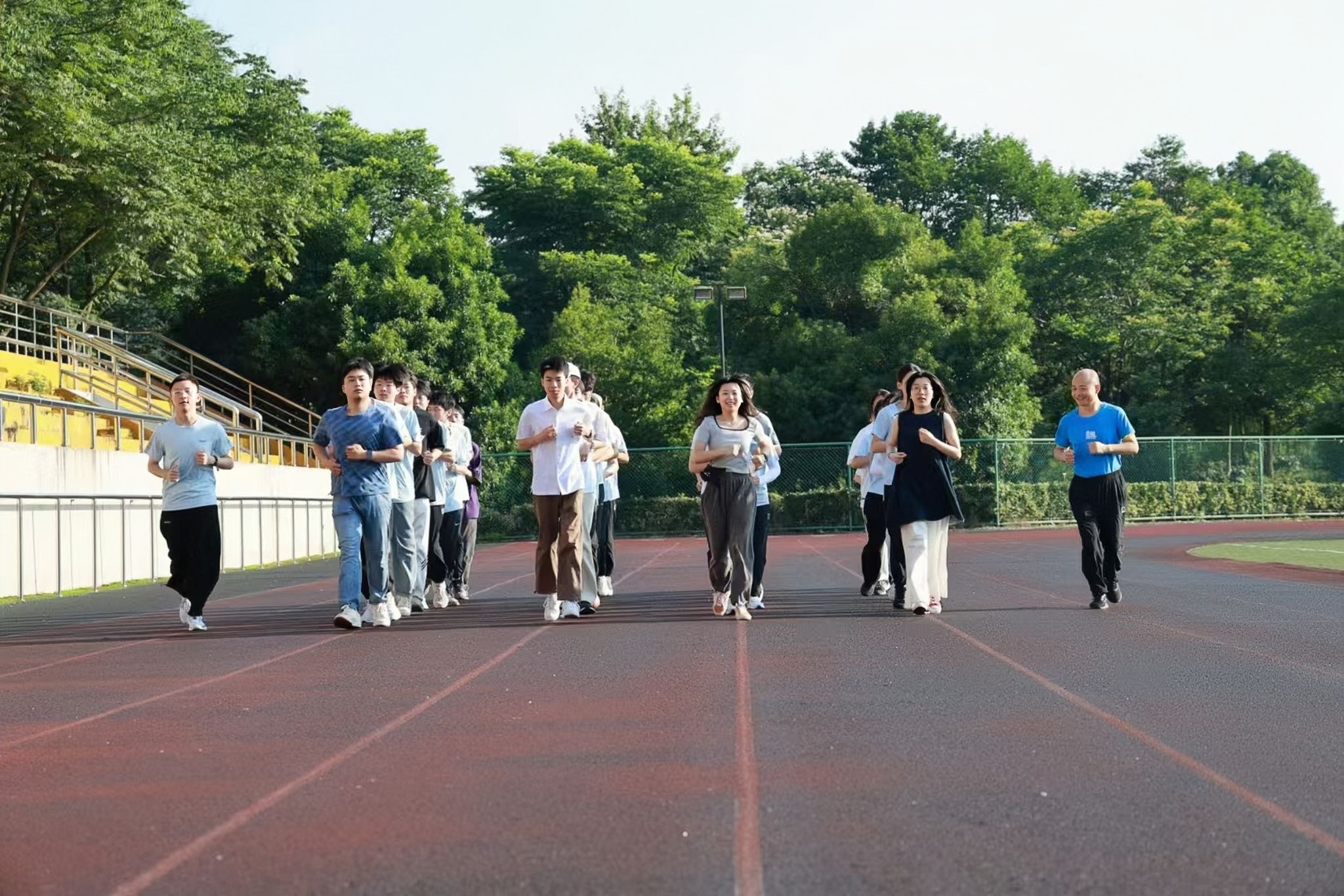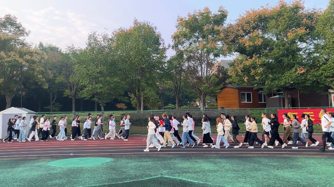 当杭城的朝霞尚未浸透云层,浙外田径场的跑道已铺满细碎的曦光。晨露在草叶上凝结成星子,又被晨跑队跃动的脚步惊起,化作氤氲的雾霭。