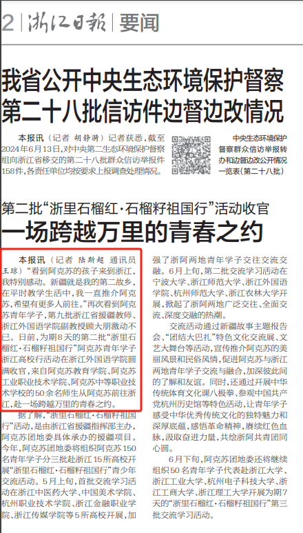 【媒体浙外】浙江日报、“学习强国”全国学习平台等报道“浙里石榴红·石榴籽祖国行”走进浙外