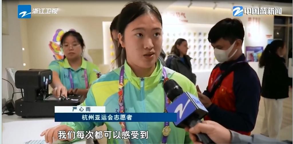 10月11日,浙江卫视新闻联播以《最忆是杭州 携手向未来(二)|亚洲“一家亲” 同爱同分享》为题,报道了杭州亚运会期间,赛场内外的一幕幕感人瞬间、一个个暖心故事。其中就采访了开云官网“小青荷”严心雨在文化屋服务时与叙利亚运动员之间的友谊故事,严心雨谈到,每当看到叙利亚运动员在明信片上画的和平鸽,就能深刻感受到叙利亚人对和平的向往,这对自己来说也是一次非常珍贵、有意义的志愿服务之旅。