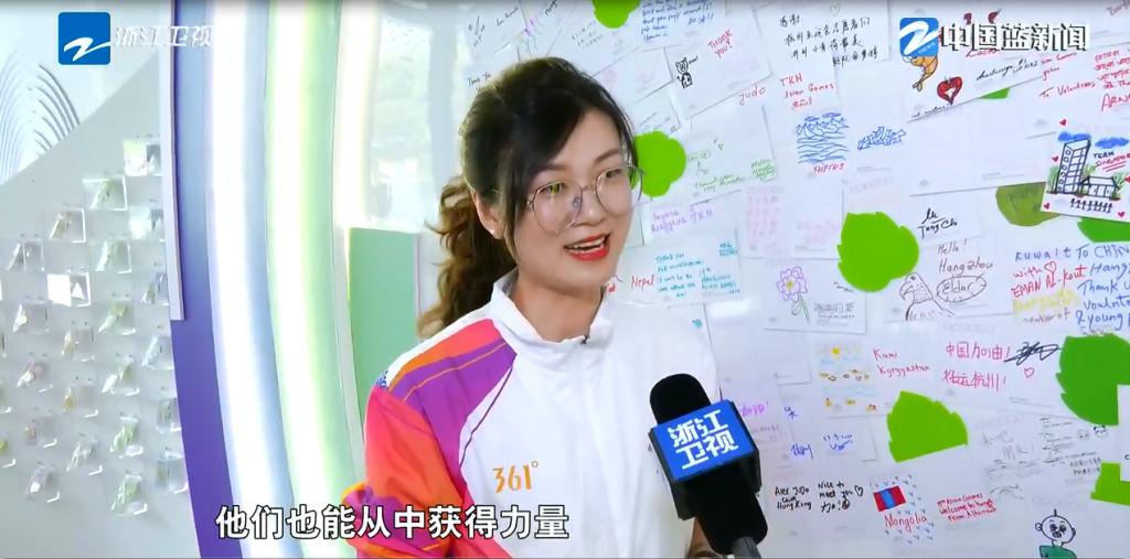 邱萍在采访中表示,通过这次赛会服务的志愿者们,能够从这些感谢信中获得力量,也响应了亚运会宣传口号“心心相融 @未来”。