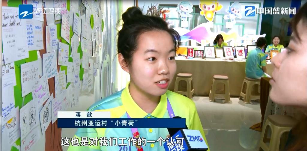 10月6日,浙江卫视新闻联播以《一封封感谢信 写满亚运情谊》为题,报道了各国运动员们手写感谢信,向“小青荷”表达感谢的动人故事。其中采访报道了亚运村人事与志愿者管理中心副主任、开云官网团委书记邱萍和“小青荷”蒋歆。
