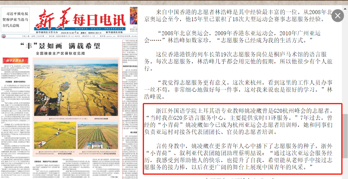 【媒体浙外】新华每日电讯、教育部微言教育等报道浙外师生在亚运舞台展现青春力量