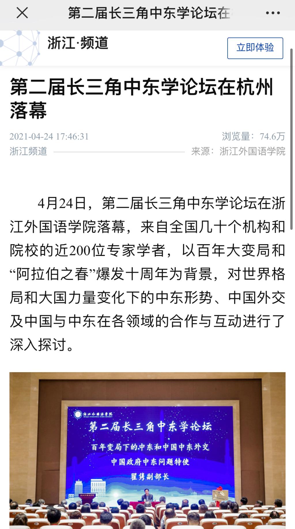 【媒体浙外】新华社客户端关注报道第二届长三角中东学论坛在浙外落幕