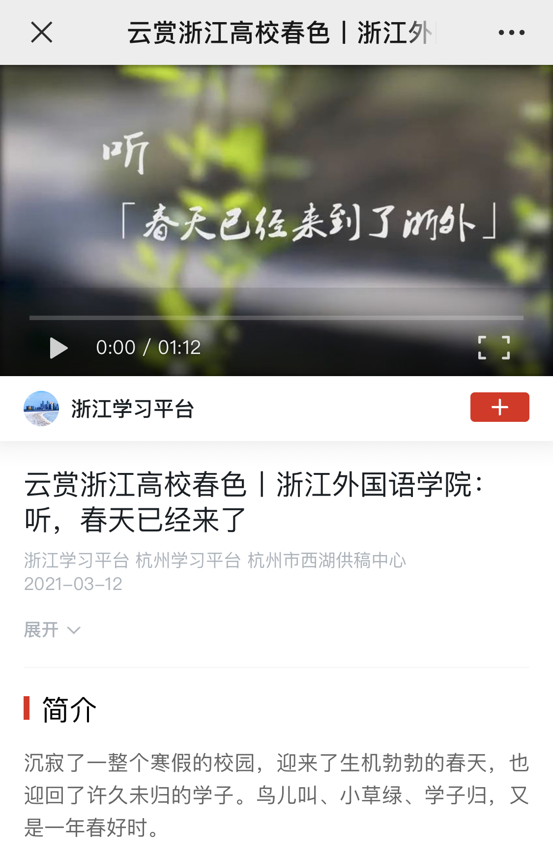 【媒体浙外】“学习强国”平台关注报道浙外春景